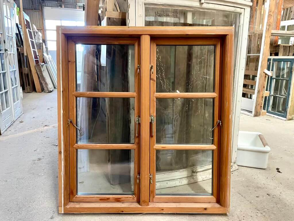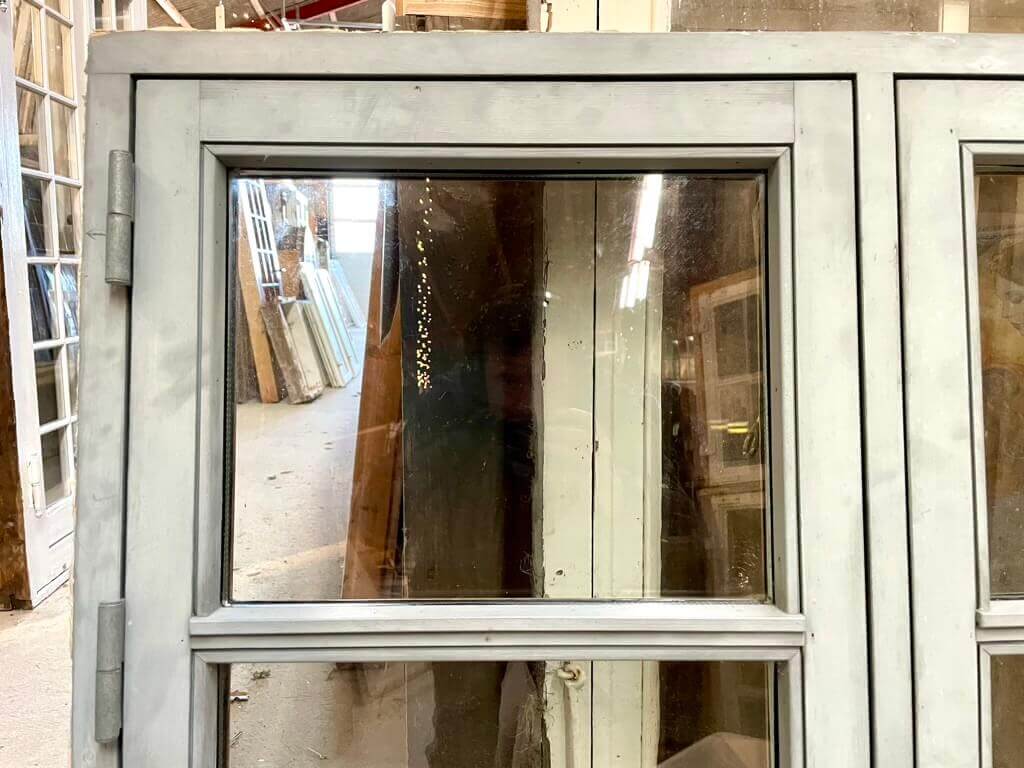 Pænt og velholdt, snedkerbygget 2-fags termovindue med 3-ruders vinduesrammer.