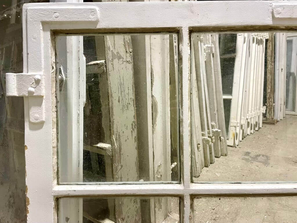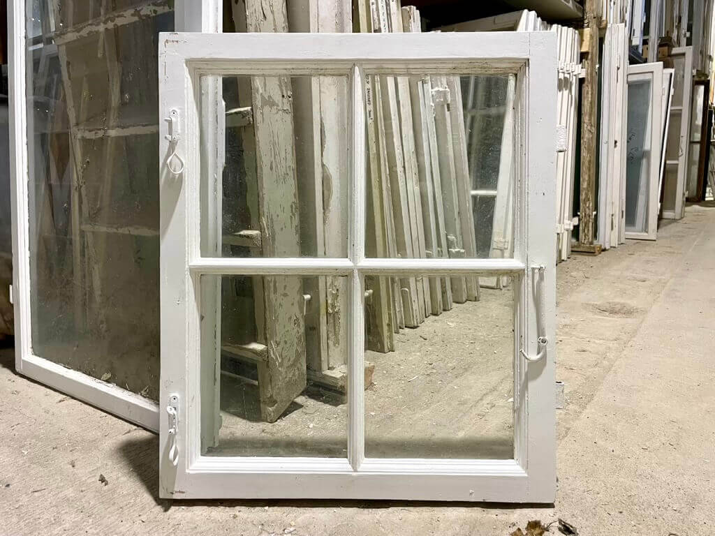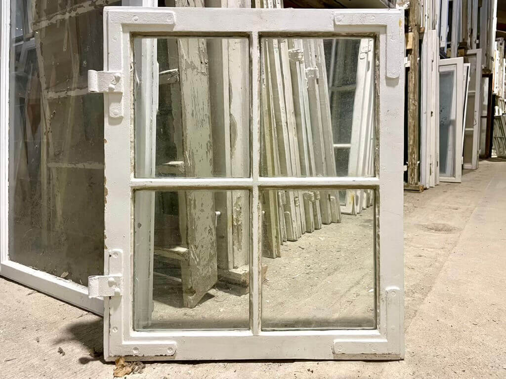 Fin 4-ruders vinduesramme fra Den Spanske Ambassade i København. Med fine, detaljerede profiler indvendigt samt smalle sprosser med kittede ruder. Flere ruder i originalt, trukket glas. På lager i forskellig stand - dem med afskallende maling og løs/manglende kit sælges for 150 kr.