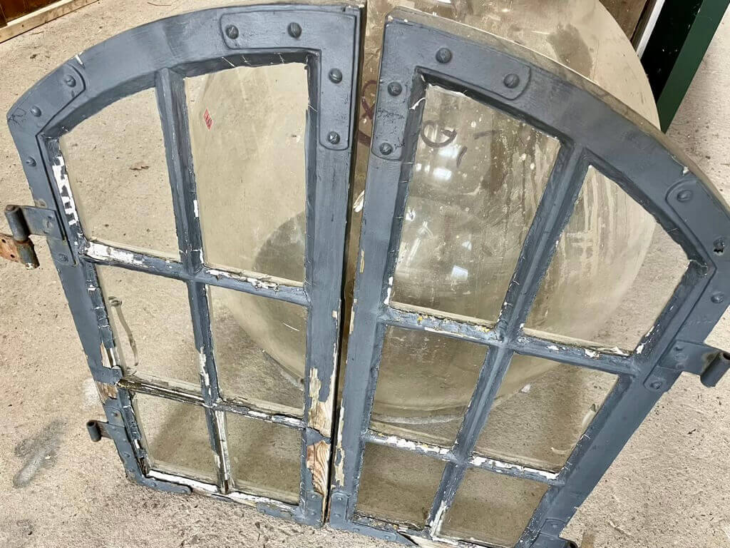 Lille, original vinduesramme med seks småsprossede ruder. Fra buet kvistvindue. Maling og kit stedvis løs eller manglende. Sundt træværk. Oprindelogt to på lager; en venstrehængt og en højrehængt.