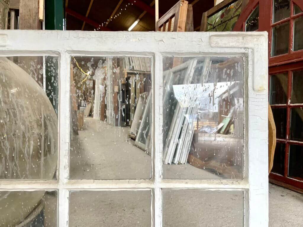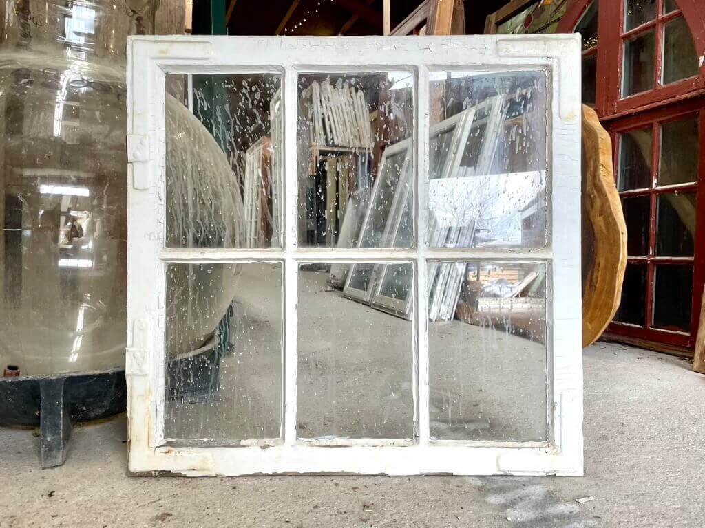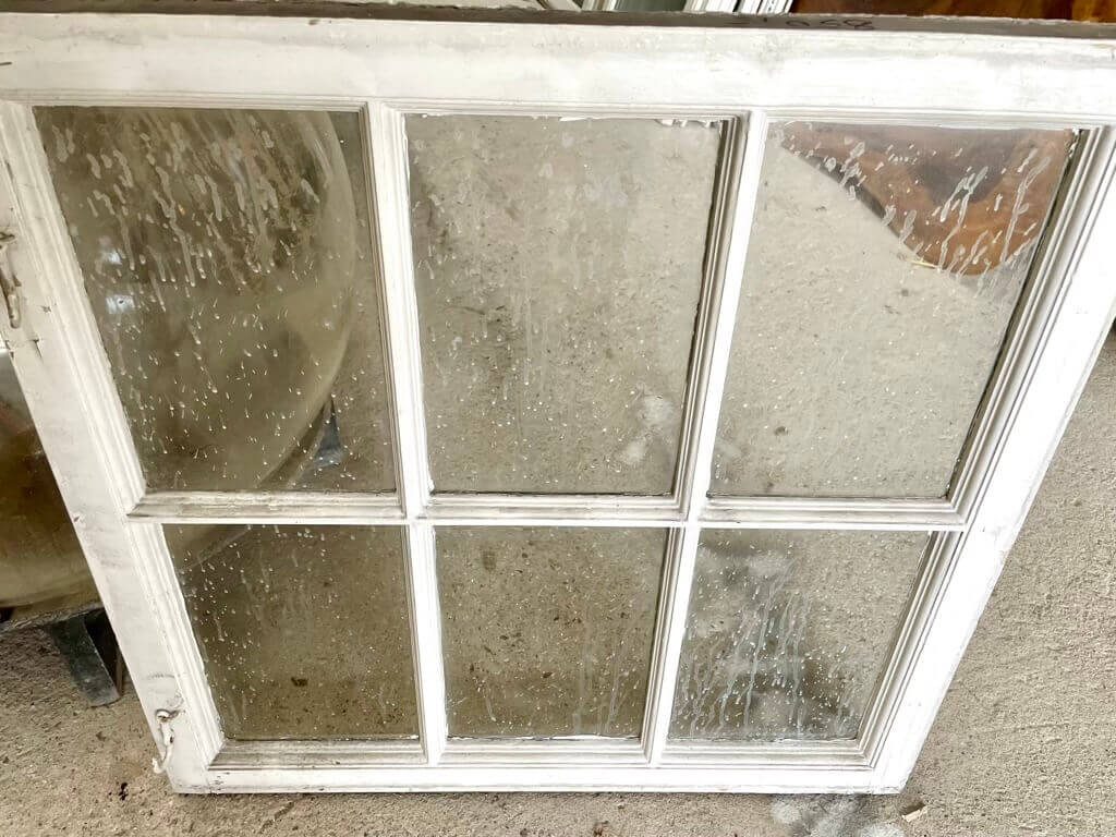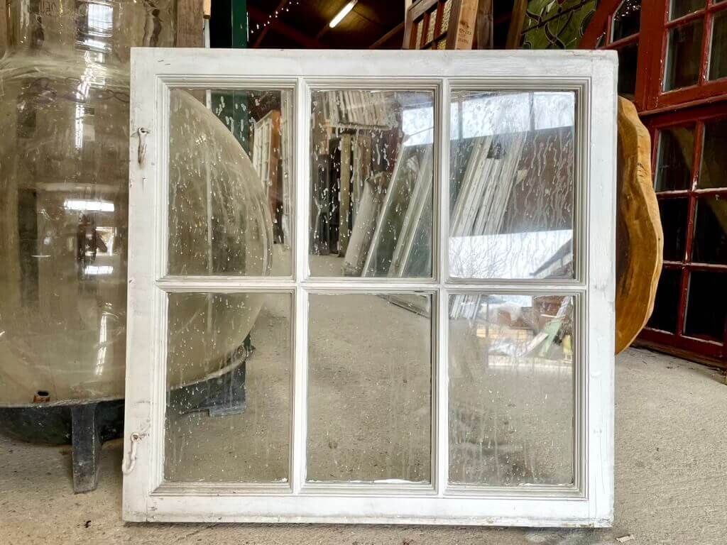 Fin 6-ruders vinduesramme fra den Sydafrikanske Ambassade i København. Med smalle sprosser og kittede ruder. Maling og kit stedvis løs eller manglende. Sundt træværk og faste hjørnebånd. Meget fine profiler indvendigt.