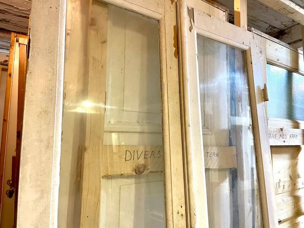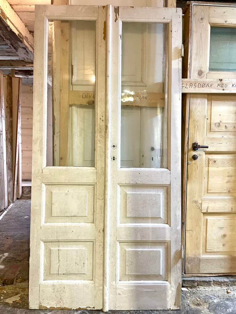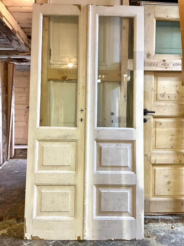 Dobbeltdør m. smukke fyldninger og trukket glas 3.500,-