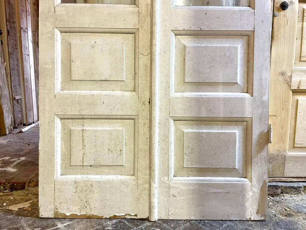 Fin, dobbelt glasdør med pæne fyldninger samt stort rudeparti af originalt, trukket glas. Yderst sjældent i den størrelse.