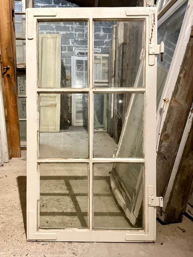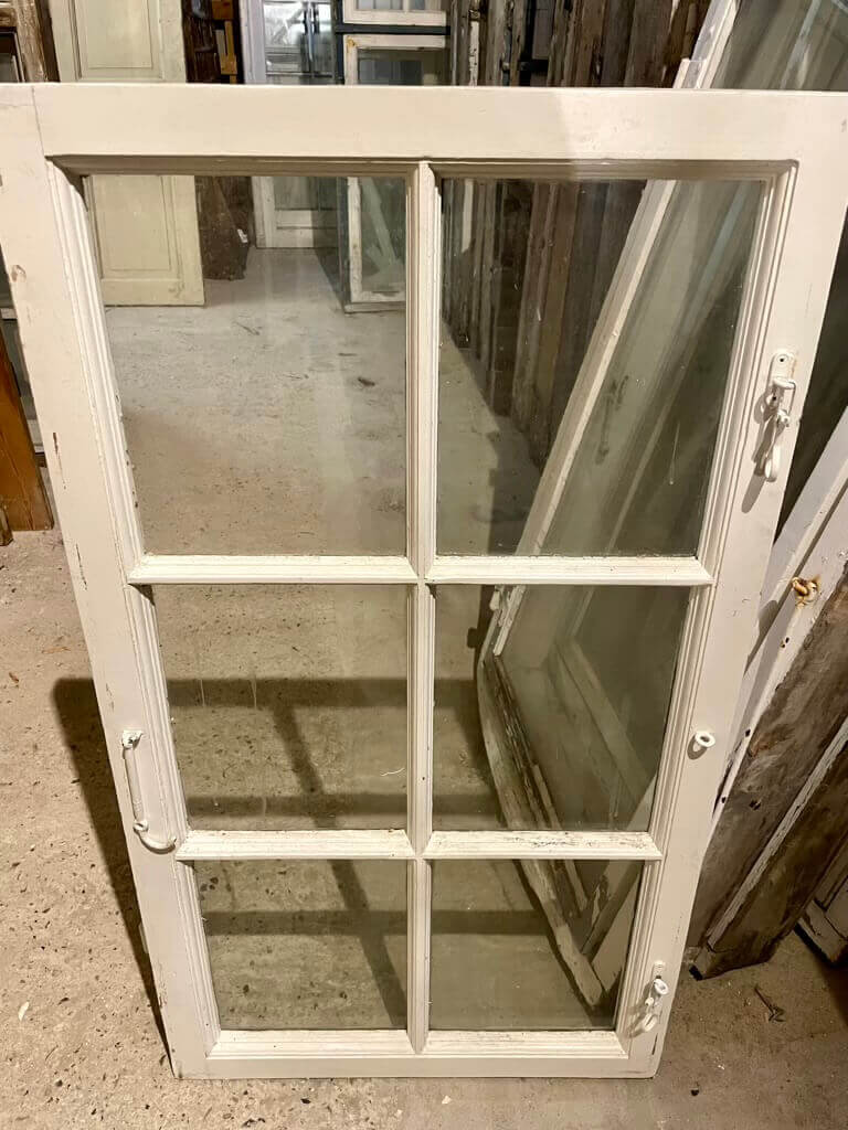 Fin, mindre 6-ruders vinduesramme fra Den Spanske Ambassade i København. Med smalle sprosser og kittede ruder.