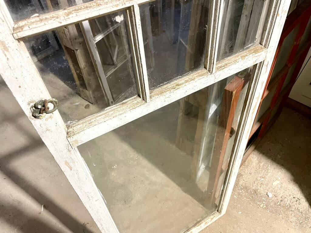 Høj vinduesramme m. små rudefelter øverst 1.800,-