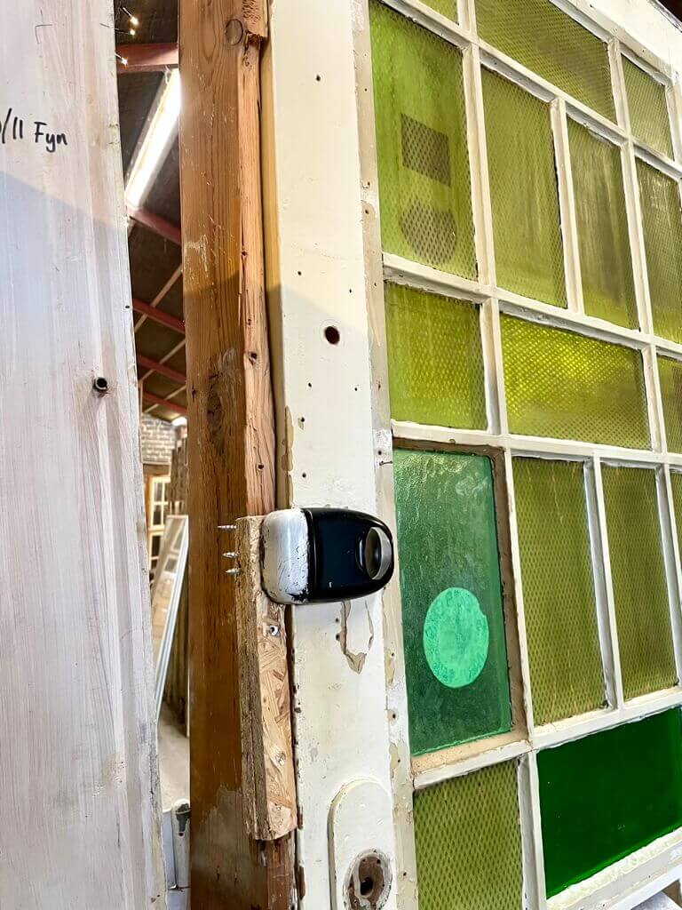 Døren kræver lidt mere arbejde end de tilsvarende døre fra samme ejendom og er derfor også tilsvarende billigere.