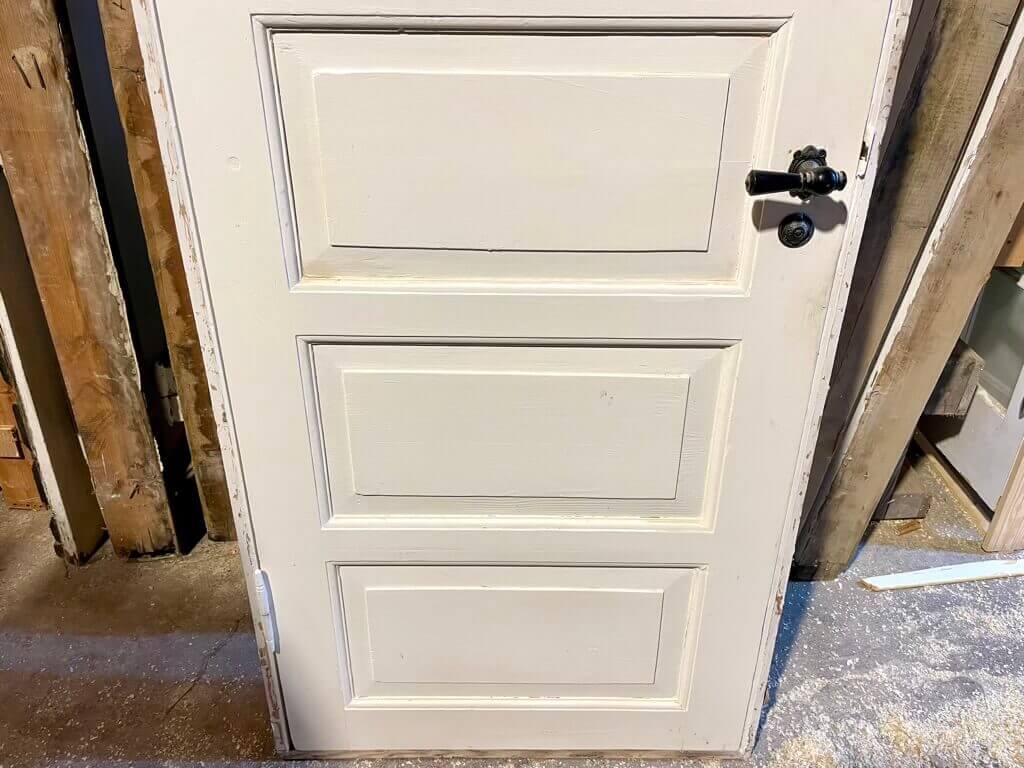 Fremstår med sundt træværk, let afskallende maling, smukke Københavner-greb og original karm med bundstykke.