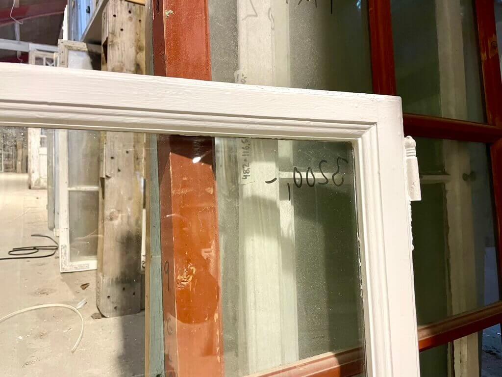 Klassisk forsatsramme med særligt smukt, trukket glas, der har utrolig meget spil i lyset. Velegnet til reserveglas. Selve vinduet står i god stand med sundt træværk samt løs/manglende kit. Lysmål på ruden er 59,5 x 63,5 cm.