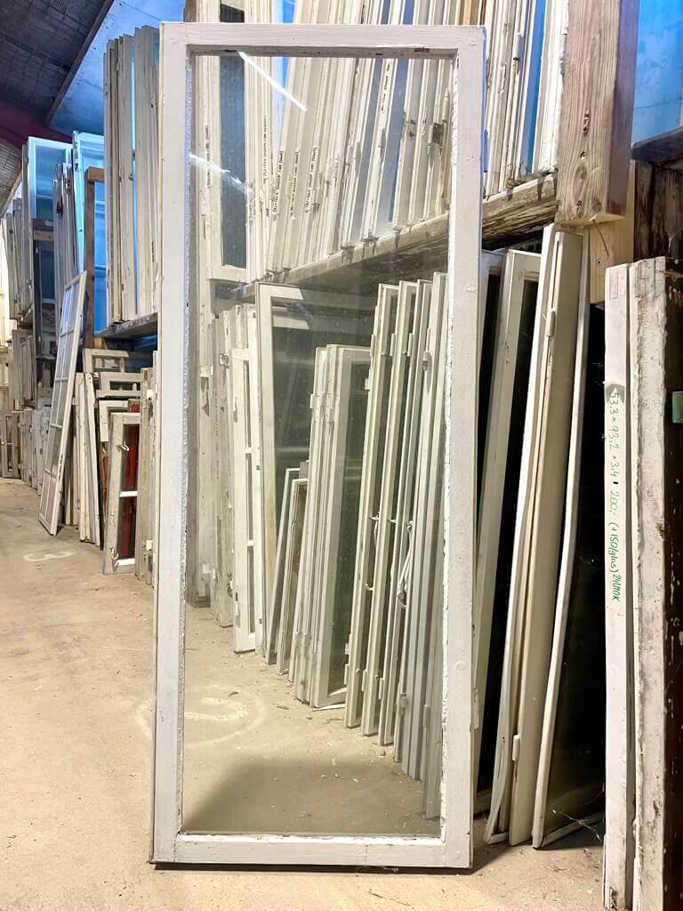 Klassisk forsatsramme i relativt højt mål. Men enkelt, stor og kittet rude og fine profiler. Flere på lager - både venstre- og højrehængt. Sundt træværk. Både kit og maling skal opfriskes.
