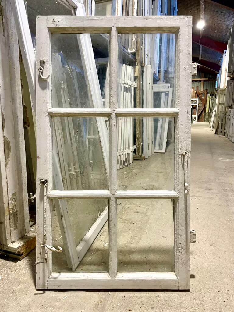 Klassisk, original mindre 6-ruders vinduesramme med smalle sprosser. Kittede ruder - enkelte i partiet kan have en gået rude; ny kan skæres ved køb.