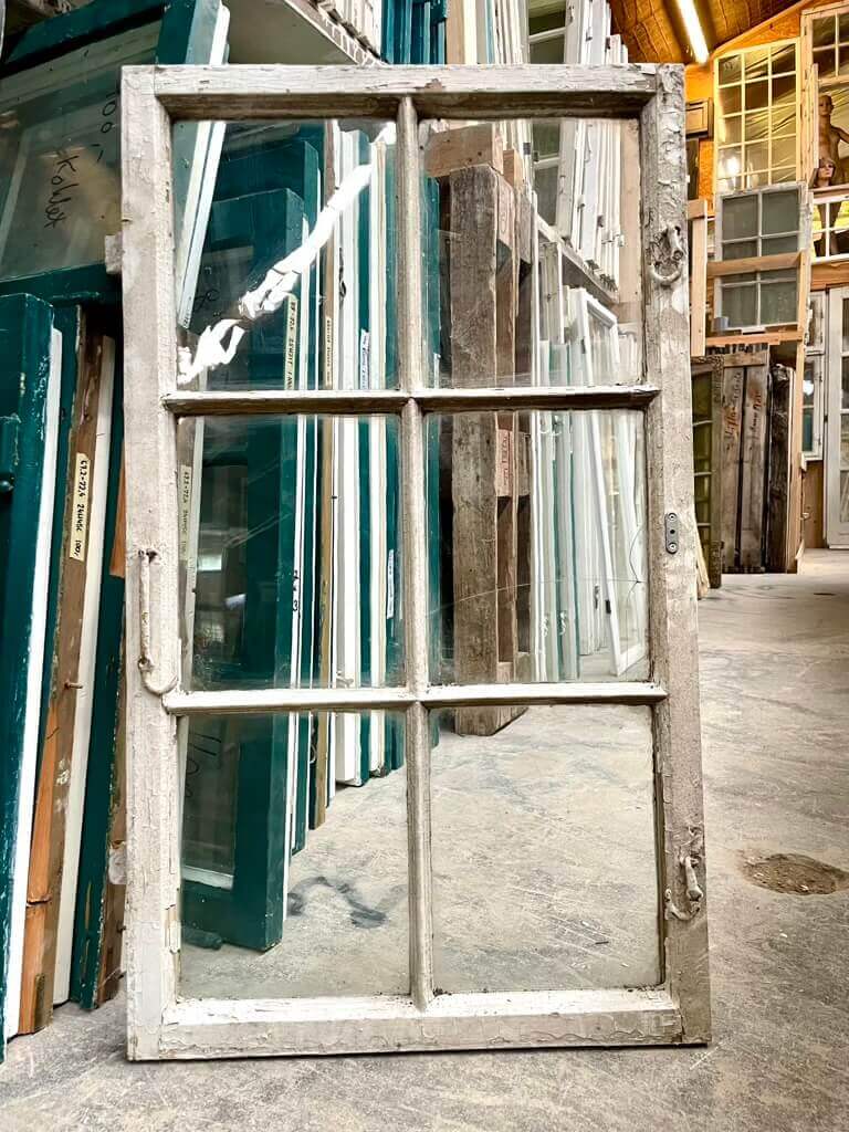 Klassisk vinduesramme m. 6 ruder, u. karm 450,-
