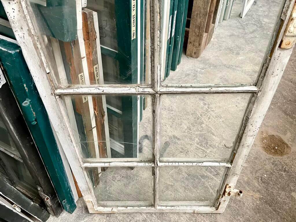 Klassisk, løs vinduesramme med 6 ruder, hvoraf flere er inoriginslt, gammelt glas. Enkelte ruder kan være itu (nyt glas kan skæres ved køb). Træværk fremstår stærkt og sundt og maling og kit er løs flere steder. Fin type med meget smal ramme.