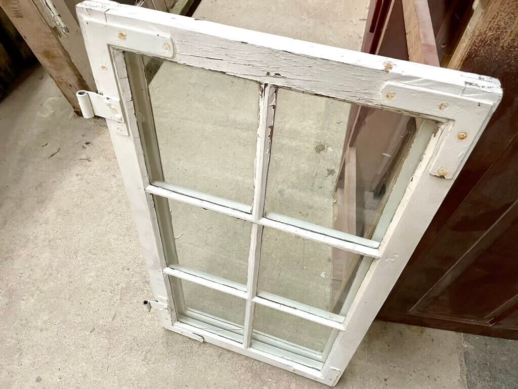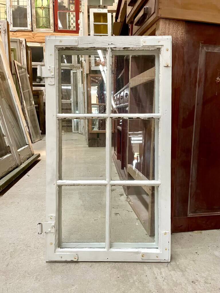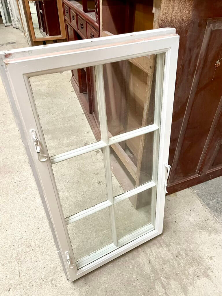 Lille, original 6-ruders vinduesramme med koblet ramme (som nemt kan tages af). Fremstår med sundt træværk og overordnet pæn maling - kit er stedvis løs eller manglende. Smalle sprosser, små rudefelter. Fra ejendom i Gentofte, hvor ejeren er blevet rådgivet forkert af en uvidende tømrer (som endda destruerede karmene og flere andre vinduer!) og derfor har udskiftet vinduerne.