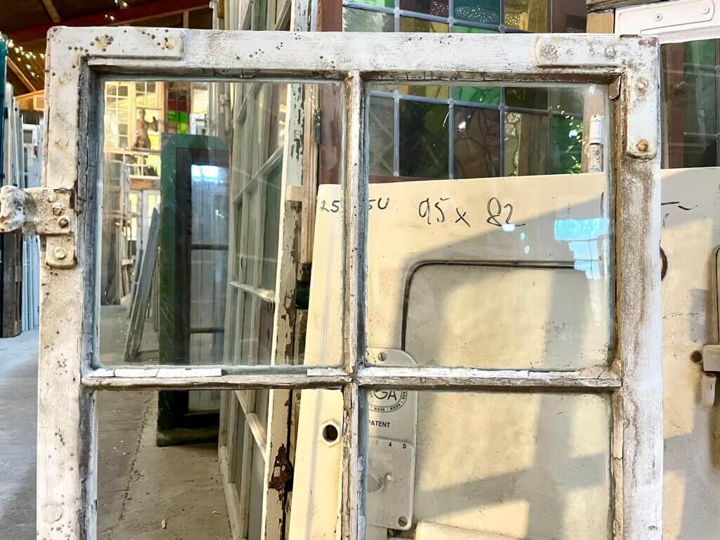 Lav, original 6-ruders vinduesramme med smalle sprosser og kittede ruder. Flere ruder i originalt, trukket glas. Overordnet sundt træværk samt læs/manglende kit og maling. Lavere pris, da de fleste mangler 1-3 ruder. Nyt glas kan tilkøbes ved køb.