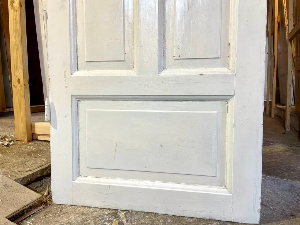 Original fyldningsdør m. fire felter, u. karm 600,-