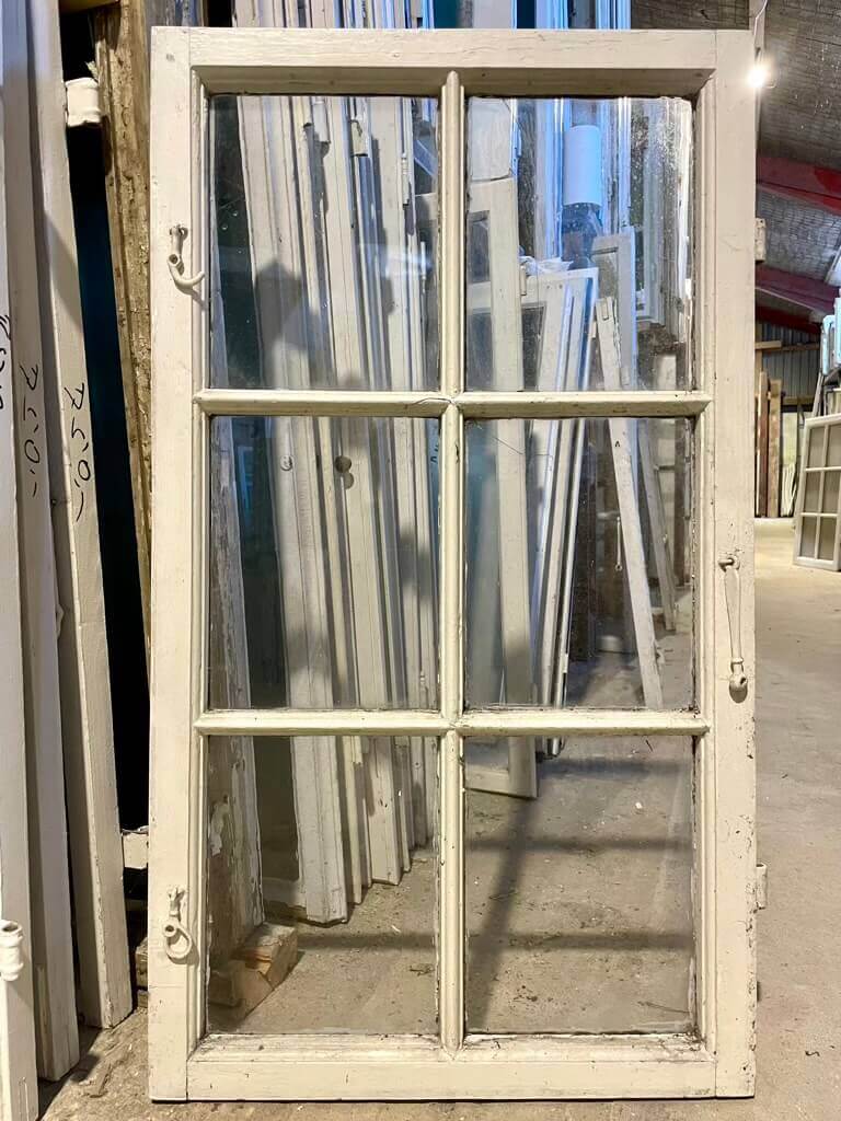 Fin, mindre og original 6-ruders vinduesramme. Med kittede ruder og intakte hjørnebånd, der lige skal hæftes. Fremstår med sundt træværk samt maling og kit, der er løs eller manglende. Kan have 1-2 ruder med revner.