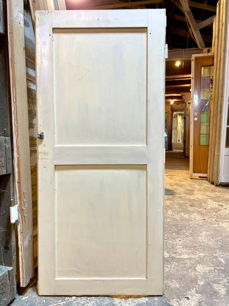 Fin, original låge oprindeligt anvendt i skunk - men fint anvendelig til skab eller køkken. Fremstår i god stand med falmet maling. Pæne profiler i felterne.