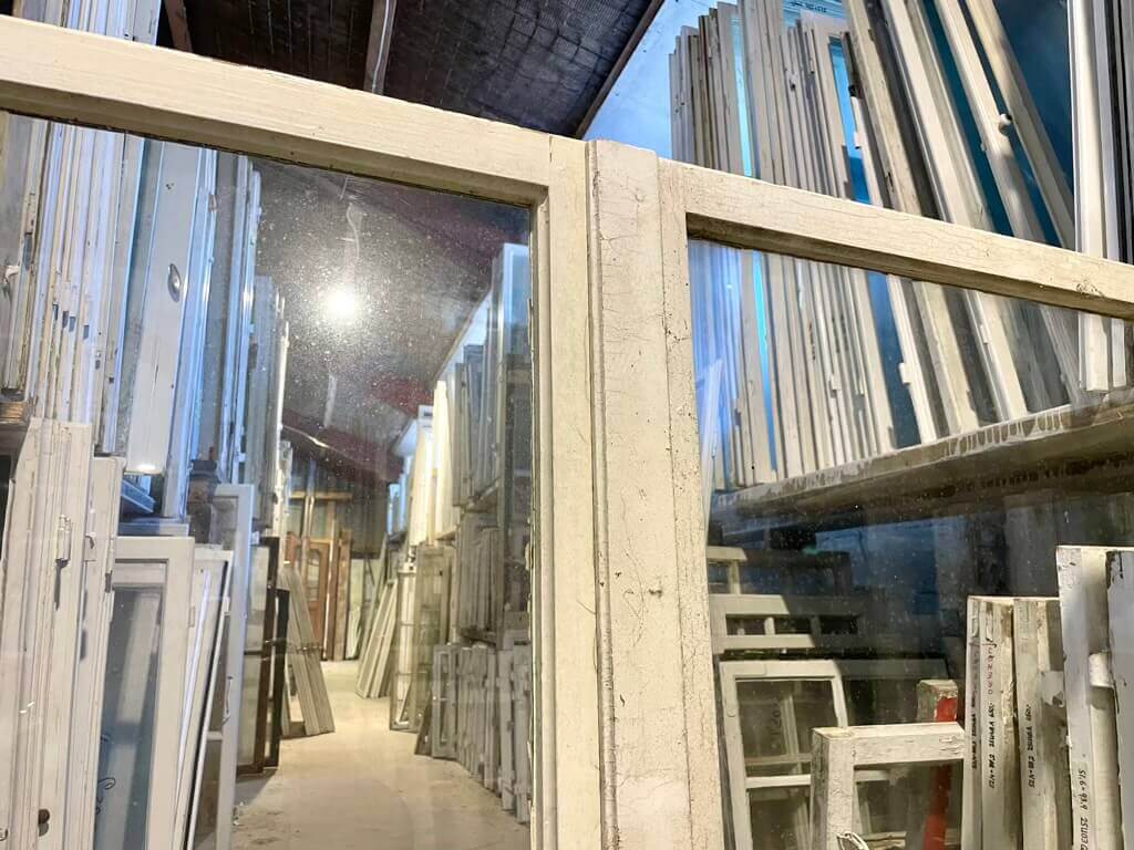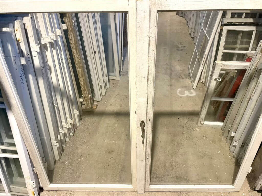 Sæt af to store forsatsrammer; hver med stor, kittet rude. Lukkemekanisme med paskvilgreb. Pæne greb. Uden karm. Fremstår med sundt træværk samt stedvis løs eller manglende kit og maling.