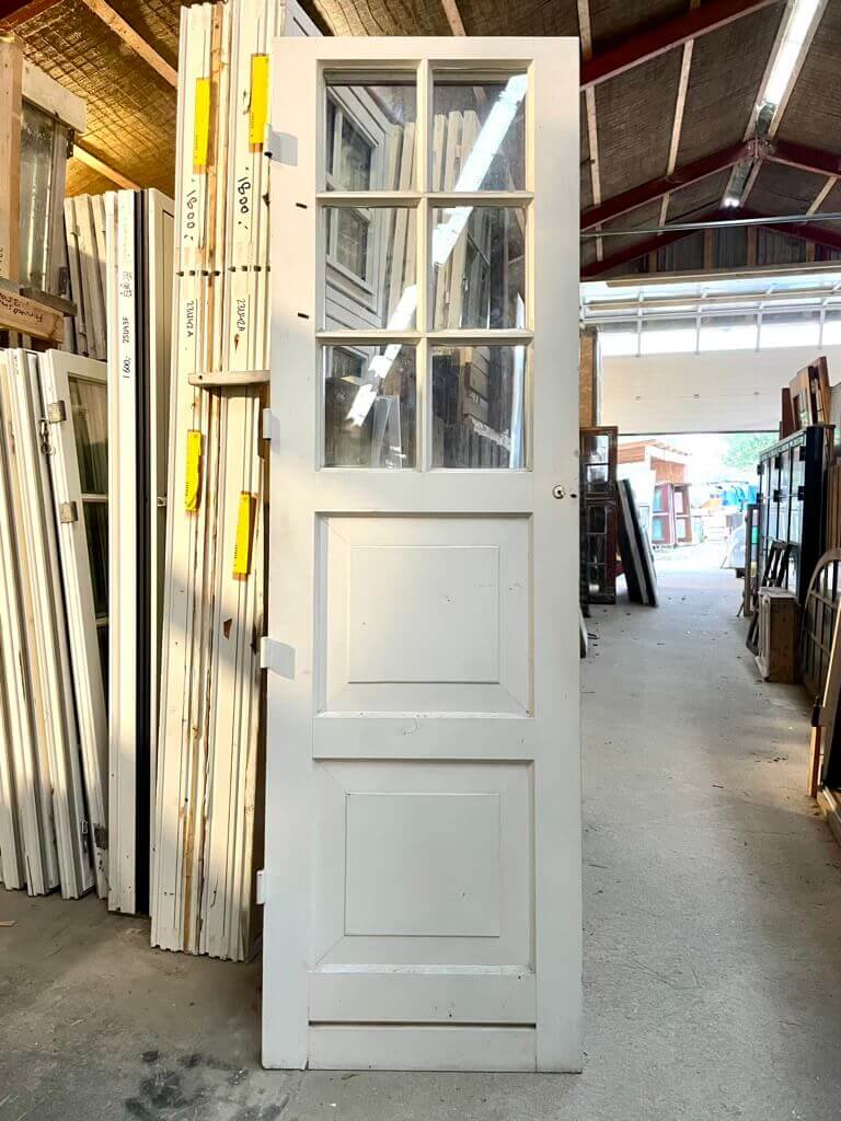 Døren er højrehængt og åbner ud. Med indvendigt greb. Døren er uden karm.