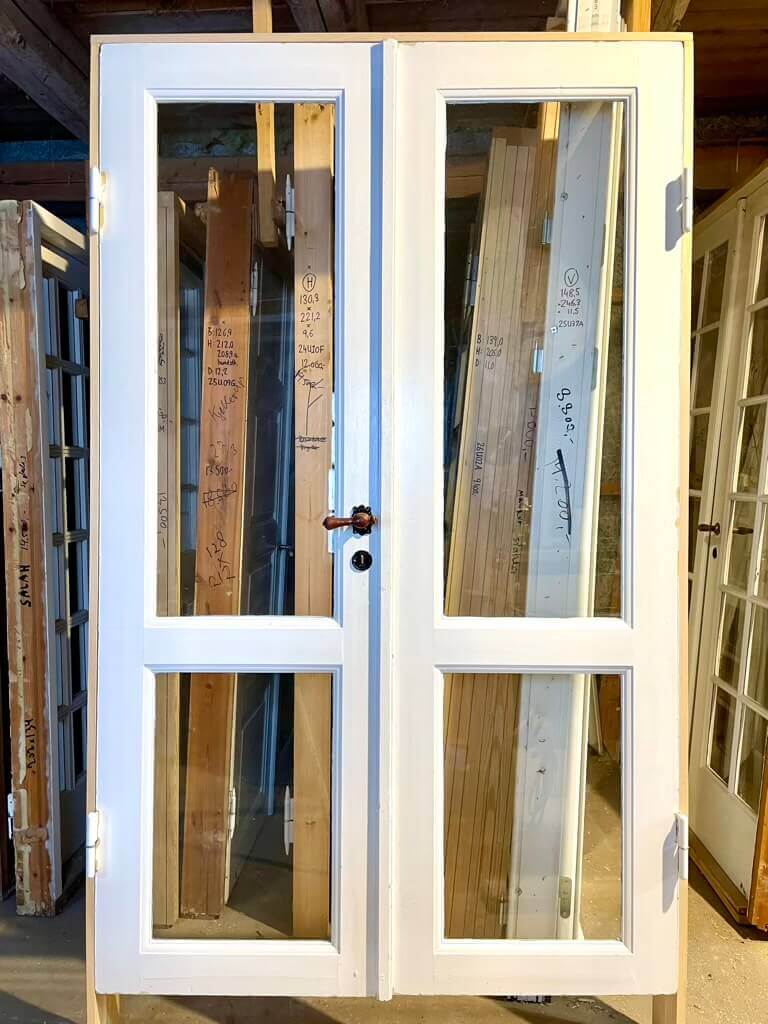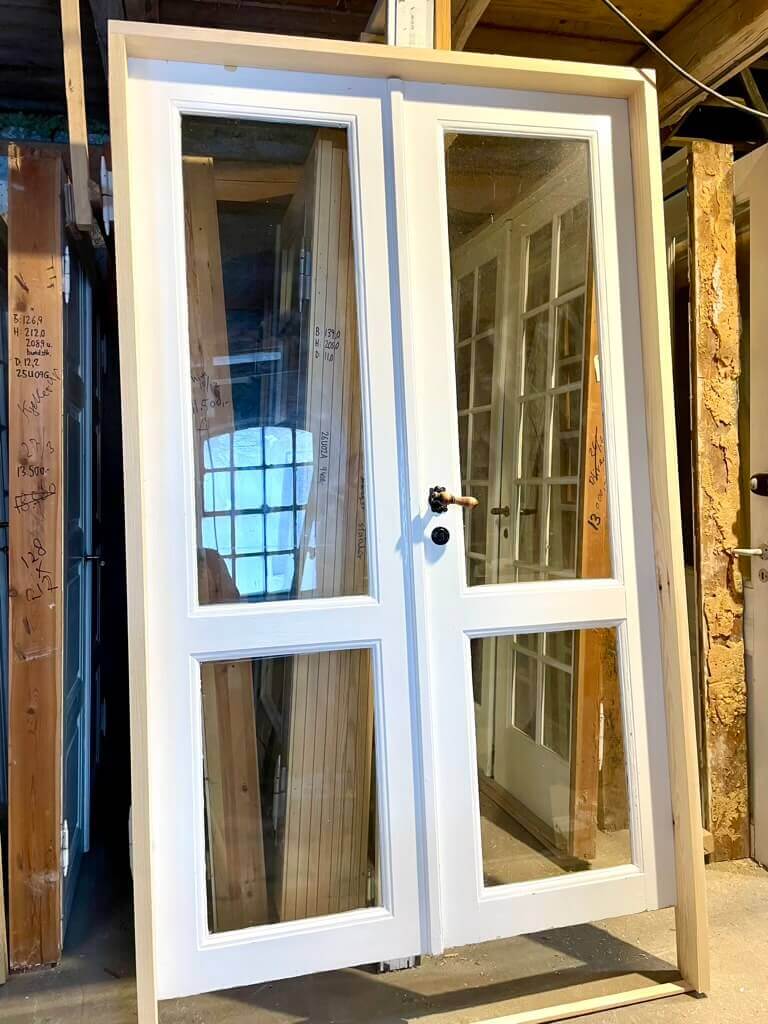 Smuk dobbeltdør m. store glaspartier og karm 12.500,-