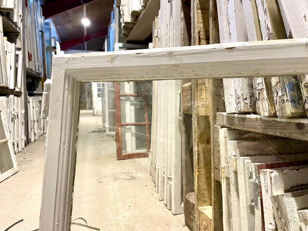 Klassisk forsatsramme med meget smukt, trukket glas med et utroligt lysspil. Velegnet som reserveglas. Lysmål på ruden er 49,0 x 58,5 cm. Det angivne mål ovenfor er for selve vinduet. Fremstår med sundt træværk, løs/manglende kit og afskallende maling.