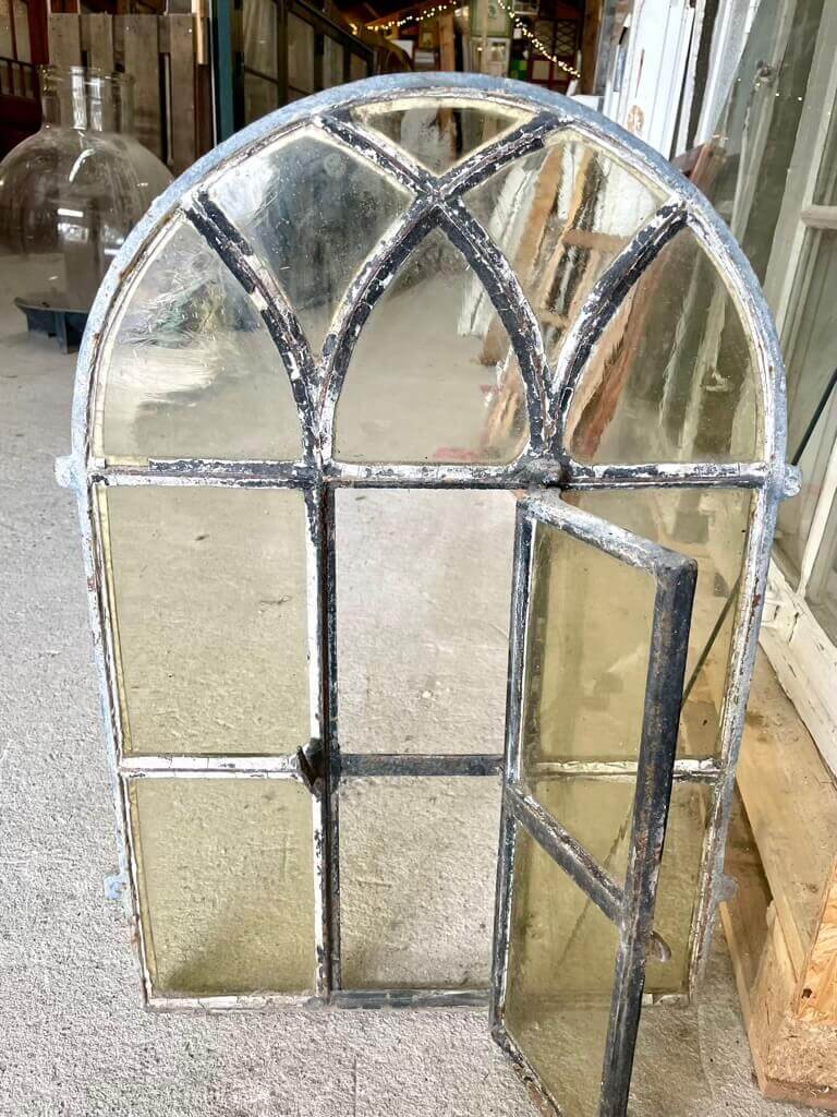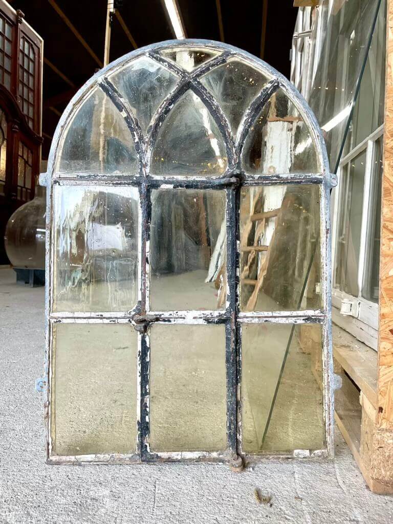 Støbejernsvindue m. buet og svungne sprosser 1.800,-