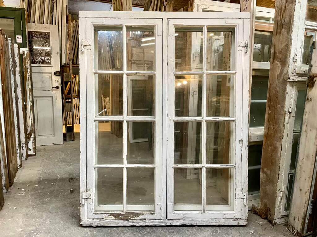 Sjældent stort 2-fags vindue med 8-ruders vinduesrammer - tilsvarende store rudefelter. Med smalle sprosser og kittede ruder. Derudover med originale forsatsvinduer (oprindeligt tre på lager uden forsats til lavere pris; 3.200).