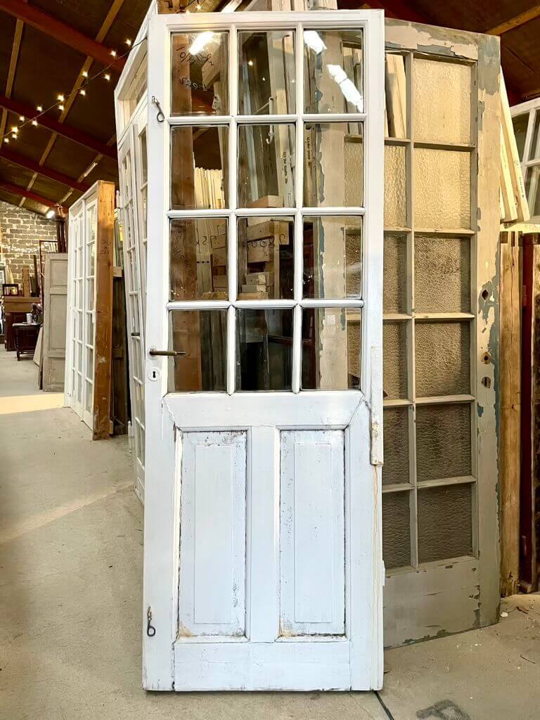 Udvendig enkeltdør m. smukt, gammelt glas 2.800,-